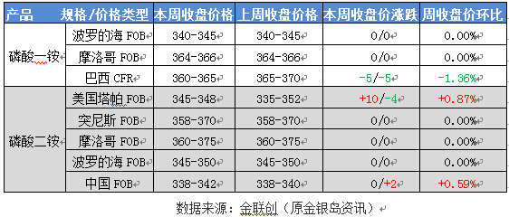本周国际磷酸一铵、磷酸二铵市场周度收盘价格对比