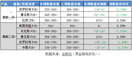 本周国际磷酸一铵、磷酸二铵市场周度收盘价格对比