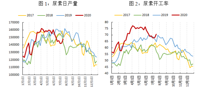今年尿素供给从6月份以来就持续下降,直到7月9日才开始少量恢复。尽管上周日产量有0.6万吨的增加,目前14.8万吨的日产量仍低于2019年同期水平。另一方面,今年上半年农业需求较好,夏粮产量同比增长0.9%,创历史新高。上半年尿素下游工业需求受到疫情影响,开工率普遍下降。但尿素工业用途的减量被农业需求的旺盛弥补,在上半年产量同比增长2.27%的背景下,尿素库存在淡季没有增长,截止上周尿素企业库存同比减少9.67%,尿素厂家库存压力较小,挺价意愿较强。