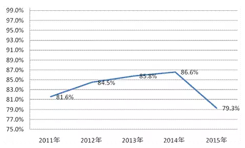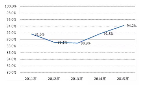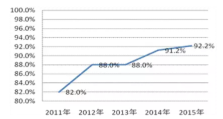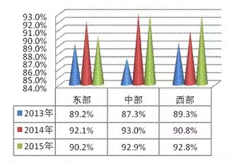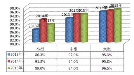 图4:2013年至2015年大中小型企业产品抽样合格率对比图