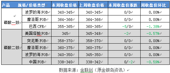 本周国际磷酸一铵、磷酸二铵市场周度收盘价格对比