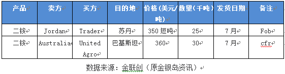 约旦:JPMC确定售往当地2.5万吨二铵,7月船期,离岸价格在350美元/短吨。这使得其他供应商8月之前暂无入市机会。