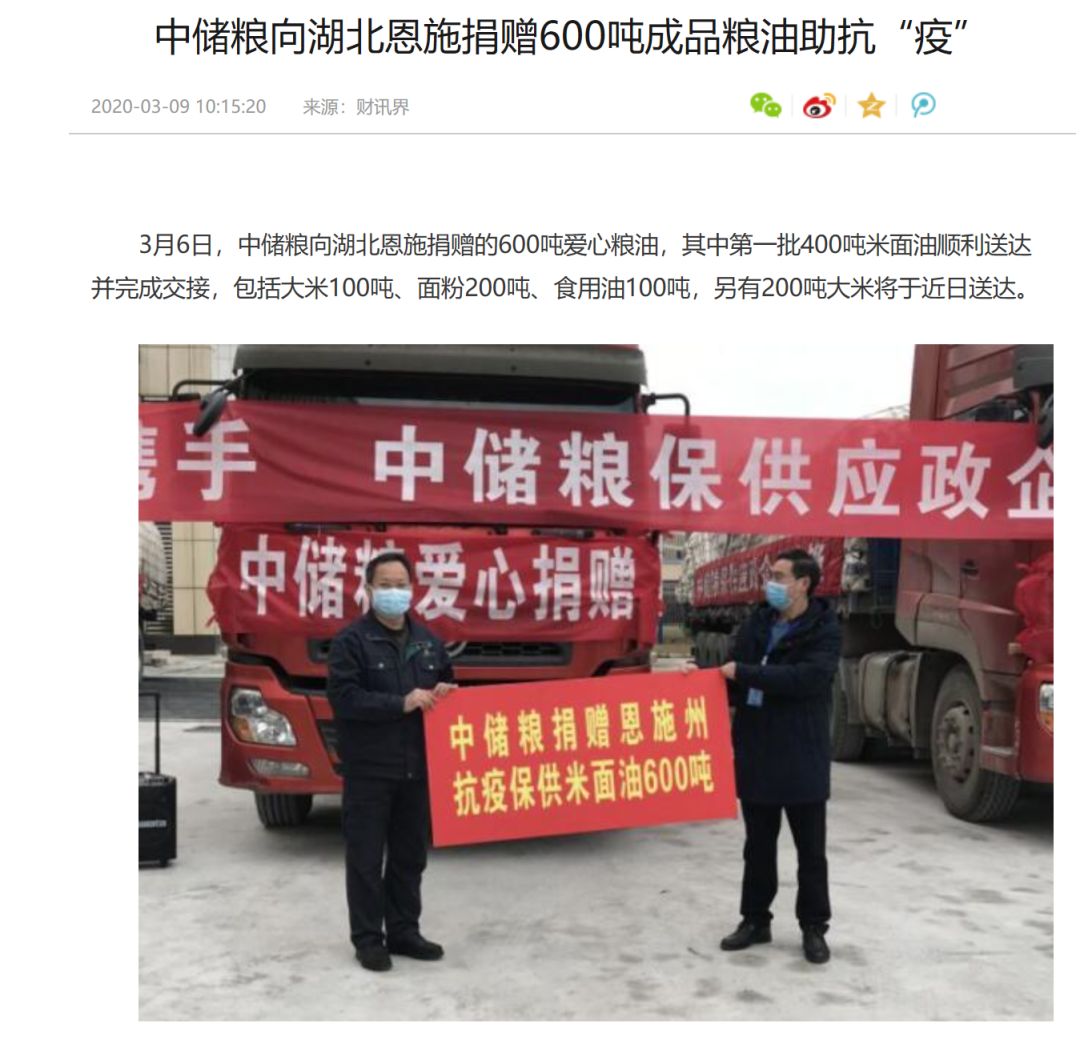 “3月6日,中储粮集团公司向湖北恩施捐赠600吨爱心粮油,其中包括大米300吨、面粉200吨、食用油100吨。”此消息一出,中储粮集团便得到了广大网友的一片称赞。 在疫情防控期间,中储粮集团充分发挥了垂直管理体系全国“一盘棋”得优势,加大了政策性的粮食投放和中央储备粮的轮出销售,累计销售原粮350多万吨。 业内人士向记者透露,我国目前政策性粮食,现主要分散储存在中储粮委托租赁的13000多个库点中。其中,地方国有库点10500个,储存的粮食占62%,民营企业库点2600多个,储存的粮食占27%。对于委托收储库点,要求必须安装、使用视频远程监控系统和库外储粮远程监管系统,实现远程监控全覆盖。在政策性粮食收购和出库过程中全面运用“一卡通”系统,实现全环节管控,全过程可追溯。除了落实“人防、技防、法防”之外,还有“经济防范”。按照委托企业性质,严格落实履约保证金、财产抵质押、市县联保等担保措施。实施征信动态监控,通过中国人民银行征信系统对委托收储库点和租赁库点、企业法人及主要股东信用情况进行动态监控,及时掌握风险隐患,并将违纪违规库点纳入“黑名单”。 中储粮集团作为中央储备粮制度执行机构,及时为各地加工企业提供原粮保障,积极履行了“大国粮仓”的责任与担当,中央储备粮制度的优越性也得以凸显。 国家队出手,手有余粮不再怕 除了把各地急需的粮油送到位,2月起,中储粮集团也开始陆续收粮啦。 此前,爱尔法农业科技(辽宁)有限公司李飞向记者倾诉,说东北地区此前因道路封闭,货物无法流通,年前农民手中有大量玉米、水稻没有及时出售,所以出现了“卖粮难”的现象。 随后,《中国农资》记者持续关注东北市场百姓粮食销售问题。2月25日,国家粮食和物资储备局发布了《国家粮食和物资储备局关于新冠肺炎疫情形势下进一步做好东北地区秋粮收购工作的通知》。 《通知》指出,当前,新冠肺炎疫情防控进入关键阶段,根据国务院联防联控机制关于做好农产品稳产保供工作有关部署要求,经商国家有关部门同意,现决定将东北地区2019年中晚稻最低收购价预案执行截止日期延长至2020年3月31日。 粮食最低收购价政策是为保护农民利益、保障粮食市场供应实施的粮食价格调控政策。是为解决“工农”问题,实施工业反哺农业而采取的重要手段。在此疫情期间,从实际执行情况看,执行最低收购价政策,上达到了稳定国家粮食生产、下达到了保护种粮农民利益等预定政策目标。 2月29日,记者从国家粮食和物资储备局官网得到国家收储粮食的最新消息——2020年国家继续在稻谷主产区实行最低收购价政策。 随后,记者从中储粮黑龙江分公司了解到,目前在中储粮在建三江、创业、佳木斯、鹤岗、鸡西直属库辖区的12个收储库点已恢复最低价稻谷收购工作。其他收购库点将于近日在当地疫情防控指挥部的指导下陆续开秤收购。此外,中储粮吉林分公司也已开秤收购,截至3月3日,累计收购最低价稻谷和中央储备粮轮换玉米共32.3万吨,各库点收购工作顺利进行。 海油富岛(上海)化学有限公司东北分公司业务人员丛龙波告诉记者,当前国家的确已经开始收储粮食了,而且价格也提高了。“现在水为15%含量的玉米收购价格为0.88元/斤,之前价格为0.65元/斤,涨幅约为013-0.15元/斤。 黑龙江省双鸭山市宝清县农民闫海山高兴地说:“现在我们农民手上地玉米、黄豆几乎没有剩余了,只剩部分水稻,粮食价格整体呈稳中上扬趋势,我们也不愁卖!”