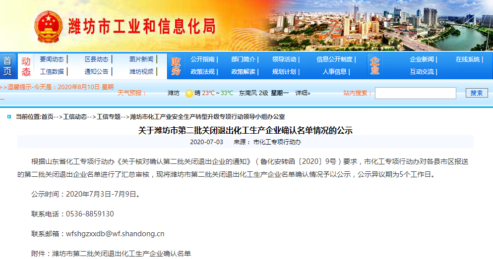 日前,山东省潍坊市工业和信息化局发布了《关于潍坊市第二批关闭退出化工生产企业确认名单的公示》。名单中包括474家化工企业其中包括40余家化肥企业