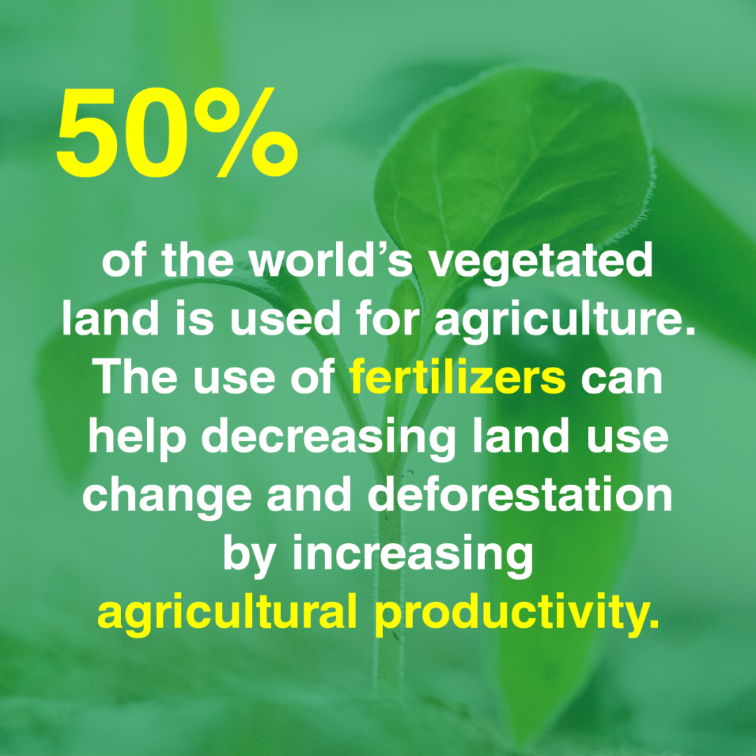 ▍世界上50%的可耕地被用于农业。化肥的使用可以通过提高农业生产率来帮助减少土地利用和森林砍伐。