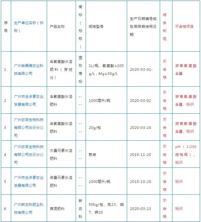 据广州市人民政府网站9月10日消息,2020年第一季度,广州市市场监督管理局对生产领域肥料产品质量进行了监督抽查,共抽查了29批次样品,经检验,有7批次产品不符合标准要求。