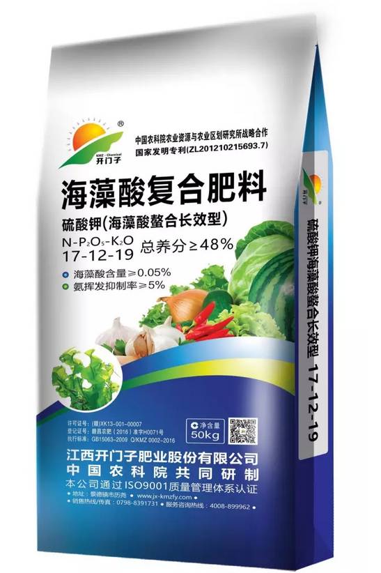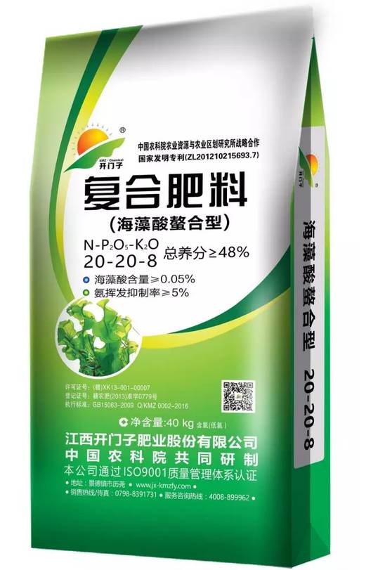 •“开门子”牌海藻系列复合肥是采用国家发明专利技术(国家发明专利号 ZL03112343.0)萃取海藻精华,与中国农业科学院联合开发的海藻有机包膜缓释新技术,属国家“863”计划科研项目!