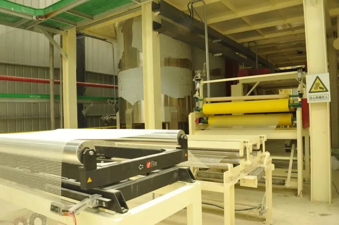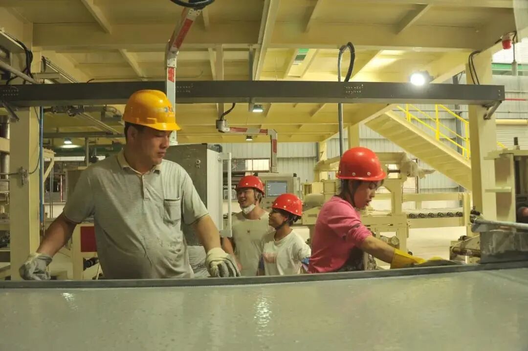 下午15时,无纸面石膏板生产线操作人员按下试车按钮,高温石膏、各种添加剂、液体料经过自动准确计量进入专用搅拌机进行混合,顺利通过成型站、随动断板机、烘干机、精切机后,成功生产出板型良好的第一批无纸面石膏板,这标志着该项目一次性全线联动带料试车成功,进入试运行阶段。 当日试车共进行4小时,试生产1200平米无纸面石膏板,所有产品全部合格。 作为全球首条最大的无纸面石膏板生产线,从项目开工到建成仅用了12个月时间,项目主要设备和控制系统均采用了目前最新的生产工艺和技术。 该生产线生产的无纸面石膏板是以高温石膏为原料,配以优质玻璃纤维及一些微量环保添加剂制成的新型无纸面纤维石膏板,省去了普通纸面石膏板的护面纸板,解决了纸面石膏板易掉皮、防火及隔声性能较差的问题,克服了市场上其他吊顶隔墙材料存在的抗冲击性能差、无法悬挂较重的饰品、抗潮湿能力差等缺陷。 该无纸面石膏板能够达到 A1 级防火等级,且强度高、抗冲击、防潮、环保、 保温、节能、声学效果均超过同类产品,可进行大面积无缝密拼,是吊顶、隔墙系统材料的更新换代产品,具有巨大的市场发展潜力。