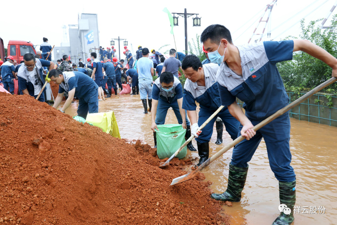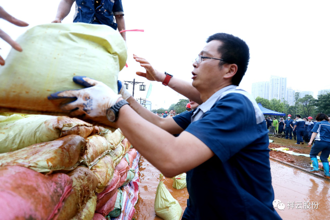 捐赠结束后,祥云股份党委副书记、总经理廖起成在接受武穴市融媒体中心记者采访时表示,发展企业,回报社会。一个企业不管做多么大、多么强,最终还要回报社会。今年的洪涝灾害是建国以来最大的一次。我们捐赠200万元,是表达祥云对武穴灾后重建的一份心意。祝愿武穴在市委市政府的坚强领导下,取得防汛抗灾的全面胜利。 汛情就是命令。7月10日下午,在接到武穴市防汛抢险任务时,祥云股份党委书记、董事长胡华文(见下图)带领150余人的抢险突击队,迅速赶赴武穴滨江公园,进行灌包、筑坝和抢险。经过大家的紧急抢险,圆满完成了组织分配的工作任务,为保卫武穴平安和谐贡献了一份力量。 入汛以来,祥云股份面临着几轮强降雨的严峻形势,长江水位持续上涨,公司迅速成立了防汛指挥部,认真部署、科学安排,组织广大干群有条不紊地开展防汛抢险、自我救灾工作,全力以赴地把受灾损失降到最低点,展现了祥云人同舟共济、保卫家园的信心和力量。这次洪涝灾害,造成祥云新区老区出现多处积水,部分生产原料、肥料成品被淹和新建合成氨项目设施设备受损,共计470余万元。 疫情还未完全消除,汛情突然接踵而至。2020年,注定是不平凡的一年,面对历史罕见的两大保卫“战役”(新冠肺炎、抗洪救灾),祥云股份不仅积极采取措施科学应对,而且第一个站出来勇担社会责任。虽然企业发展资金有限,但不忘支援武穴抗击新冠肺炎(捐赠200万元);虽然企业自身受灾,但不忘支持武穴灾后重建。