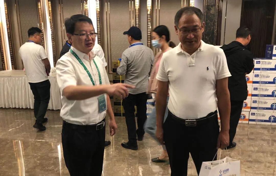 会场外,云天化连锁总经理翟树新向经销商介绍新推出的产品。